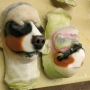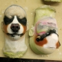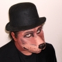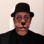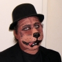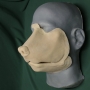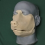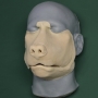 This is our Small Dog Muzzle.  Like most of our pieces, this prosthetic appliance was made to fit most faces. The main picture is the hot foam latex version applied and painted in browns as a mutt. This muzzle has a modest size, with drooping lips on the top and bottom towards the corners of the mouth. It has built-in teeth on the bottom jaw. With different makeup colors, it can be painted to resemble many breeds of dogs from sporting dogs to working dogs. It is in two pieces and comes unpainted by default.