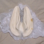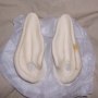 These are our Donkey Ear Tips. Like most of our pieces, these prosthetic appliances were made to fit most ears. The main picture above is the hot foam latex version. The Donkey Ear Tips are a pair of sculpted ears with a tall and thin shape which are worn over your own ears. Although these are originally meant to be for a Donkey character, they can be used for monsters and other characters with large pointed ears. They have a height of 18cm (7 1/2") from the ear lobe to the tip, they extend about 11cm (4 1/4") from the tip of your ears. It is two pieces (a pair) and comes unpainted by default.