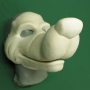 This is the Triangular Nose. This nose was specifically made to fit our Giant Cartoon Face. The main picture above is the hot foam latex version. This an accessory piece made to fit on our Giant Cartoon Face. It's a triangle-shaped nose, it's not as tall as the other noses and has an indent up the middle. It'll extend about 3cm (1.25") from the Giant Cartoon Face and is about 8.5cm (3.5") wide. It could be useful for a wolf, dog, or any number of cat characters. Try painting it in black, pink, red or any colour you desire. It is one piece and comes unpainted by default.