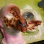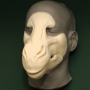 This is our Giraffe / Kirin Muzzle. Like most of our pieces, this prosthetic appliance was made to fit most faces. The main picture above is the hot foam latex version. This is a medium sized muzzle with a narrow pointed shape. It has large nostrils, a bony structure, and a thin jaw. It can be painted to resemble a giraffe, which is useful for productions of Madagascar the musical, or it can be painted in any colour as a Kirin or Qilin, especially if you give it a beard (or stick pipe cleaners into its muzzle). It also has sculpted teeth on the jaw. It is in two pieces and comes unpainted by default.