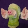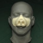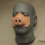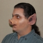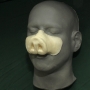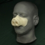 This is our Pig Nose no.2. Like most of our pieces, this prosthetic appliance was made to fit most faces. The main picture above is the hot foam latex version applied and painted in beige. This nose is similar to the first Pig Nose, however it covers less of the face. It was made specifically for the independent film "The Brick House". It has has a pig shape and wrinkles across the nose's bridge. Paint it in browns, flesh tones or pink for many pig breeds and styles. It is one piece and comes unpainted by default.