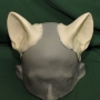 These are our Feline Prop Ears. The main picture above is the hot foam latex version. Our Feline Prop Ears are a pair of sculpted ears with a rounded shape. They are suitable for many species of cats, such as lions, leopard, tigers or more; but can also be used for raccoons, bears, or other animals with rounded ears. They have a height of 7cm (2.75") from the center of their base. They can be positioned easily on top of the head. It is two pieces (a pair) and comes unpainted and unfinished by default.