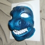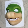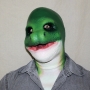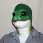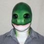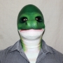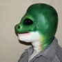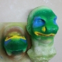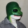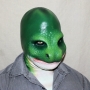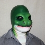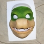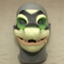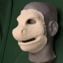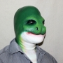 This is our Snake Face. Like most of our pieces, this prosthetic appliance was made to fit most faces. The main picture above is the hot foam latex version applied and painted in green as a generic snake. This is a medium sized face with a brow and cheeks. It sits flat against the face and it has a wide mouth. It has a scale texture and can be painted as any species of snake or python. Teeth can be added for a more ferocious look. It can even pass for Bowser. It is in two pieces and comes unpainted by default.